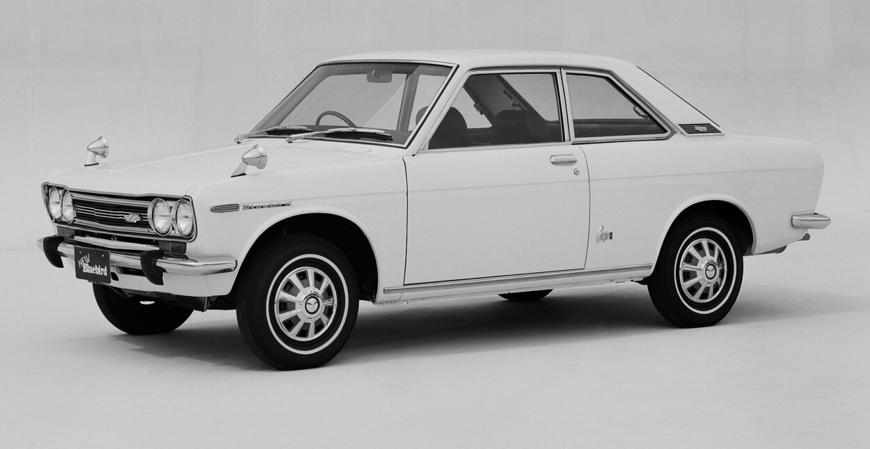 ブルーバードの歴史においてまず外せないのが、3代目の510型だろう。当時の若者を熱狂させた日産の小型車で、トヨタコロナとともにBC(ブルーバード・コロナ)戦争と言われるほど、熾烈な販売合戦を展開。1970年のサファリラリー優勝、石原裕次郎氏主演の『栄光への5000キロ』の大ヒットなど、日産を代表する名車の一台だ。