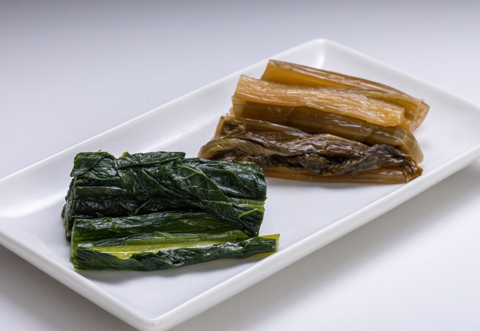 新漬けは数日漬けただけの浅漬けで、鮮やかな緑色と爽やかな風味が特徴です。一方、古漬けは乳酸発酵が進んだもので、色はべっ甲色に変わり、酸味と旨みが複雑に重なった深い味わいになります。