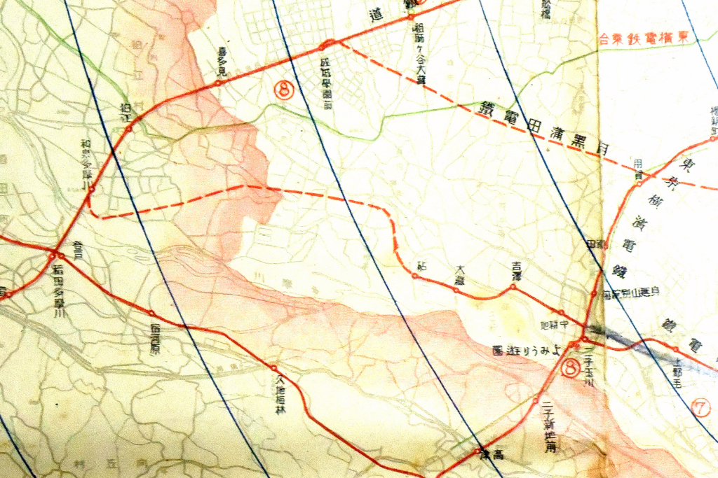 そうであれば貨物は二の次で、先ずは旅客輸送からはじめればよかったのでは、と思ってしまうが、そこは砂利輸送のために作られた路線だっただけに、そうはいかなかったのだろう。そこへ追い打ちをかけるように関東大震災(大正12年9月1日)が発生し、その被害と復旧作業も相まって、わずか2.2kmの区間を開業させるまでに、計画から4年もの歳月を費やすことになった。砂利輸送はのちに、玉川砂利会社が解散したことで行われなくなり、砧線は旅客輸送へ専念するに至った。