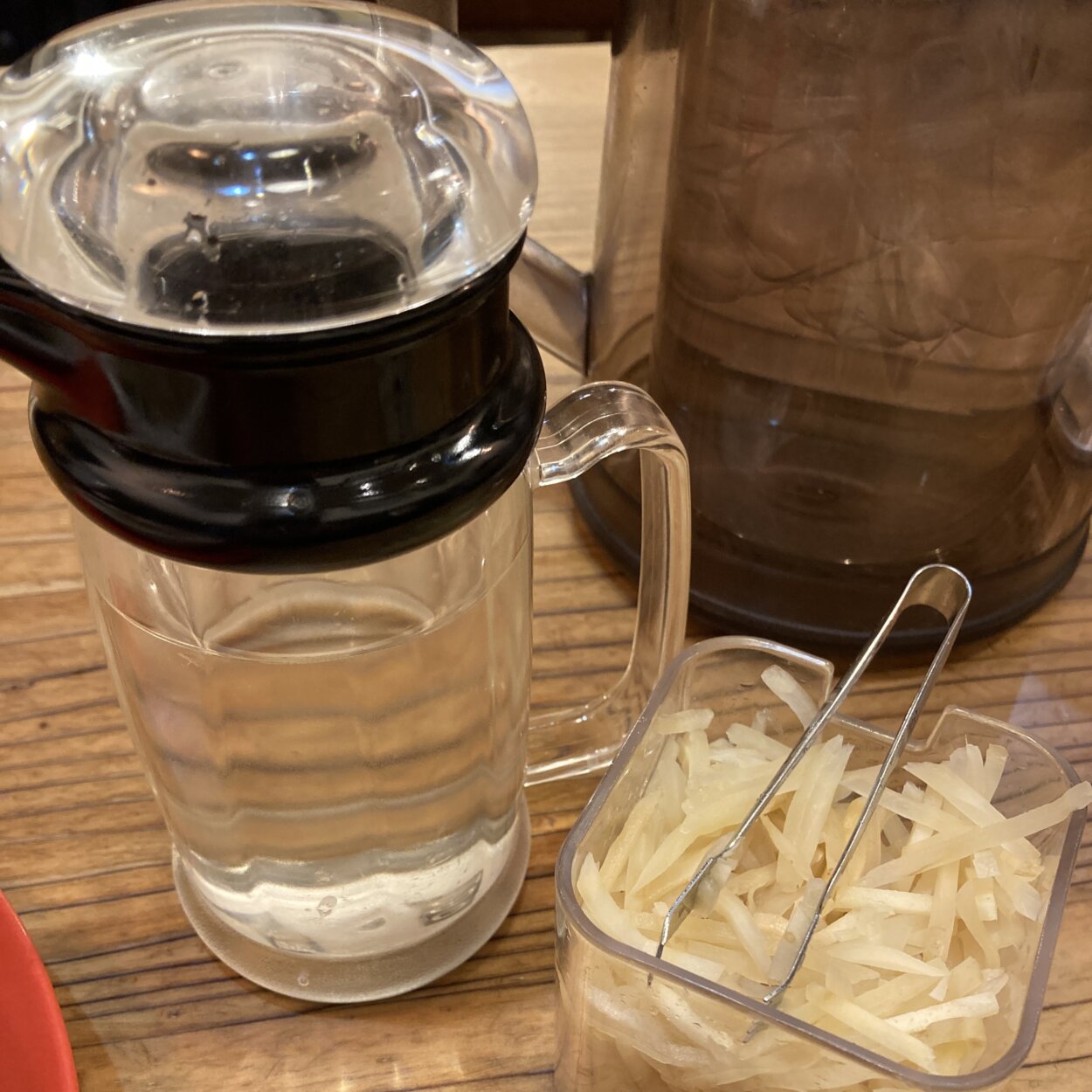 お酢や生姜漬け、辛ダレでの味変も推奨されており、たしかにそれぞれの味で近江ちゃんぽんを堪能できます。もっと早く食べておけば良かったと反省してしまう、見事なちゃんぽんでございました。