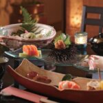 夕食はその日水揚げされた相模湾の地魚や国産和牛、鎌倉野菜など、よりすぐった食材を使用した月替わりの懐石料理。室内のダイニングルームでいただく気楽さもうれしい。2024年にオープンした鉄板焼きレストランで夕食をいただくプランもあり、好みでチョイスしたい。
