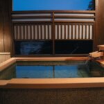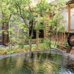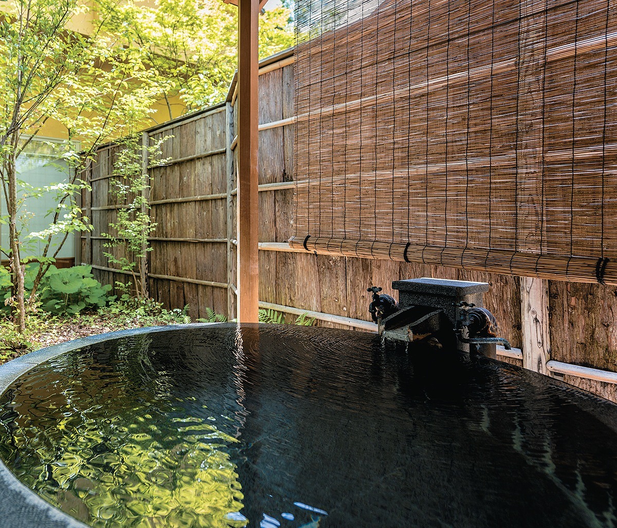 坪庭を眺めながら湯船に向かう時間は非日常感たっぷりだ。赤湯温泉の名湯は部屋の露天風呂はもちろん、館内の大浴場にもかけ流されており、露天風呂はバイブラバスになっている。湧き上がるバブルの刺激で、血行促進も期待できる。