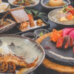 部屋でいただく食事は、「食材の宝庫」といわれる山形の恵みにあふれる。夕食は旬を提供することにこだわる月替わりの懐石料理で、ブランド牛や日本海の幸、山菜や米、果物に至るまで地産の逸品が並ぶ。お酒3種とのマリアージュを楽しむプランで美酒にも酔いたい。