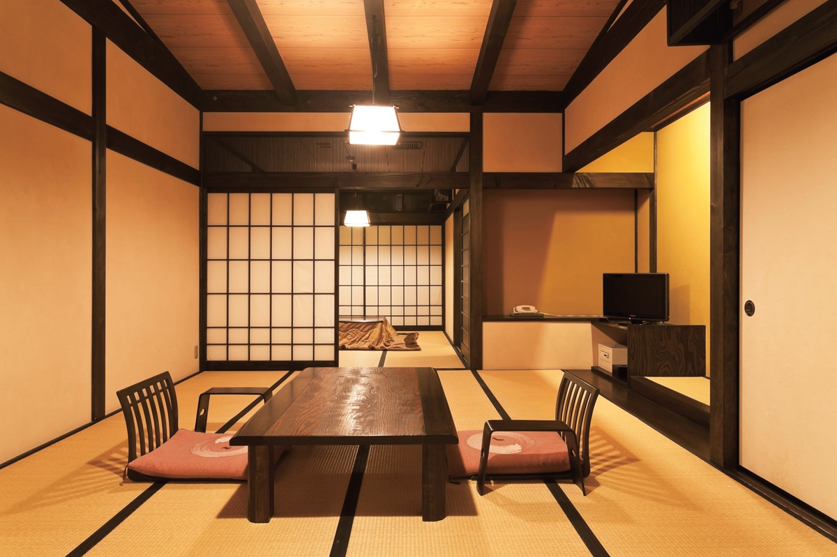 『名湯一門 高見屋 深山荘 高見屋(みやまそう たかみや)』伝統を守り続けながら現代に対応している老舗旅館は、歴史の重みを感じる純和風の佇まい。館内も情趣あふれる雰囲気