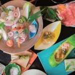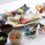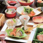 夕食は料亭食や部屋食など、宿泊タイプによって場所や内容が異なる。地産地消を大切に旬の味覚を厳選するが、ヴィーガン会席も選択可能など、多様なゲストに応じたもてなしがうれしい。