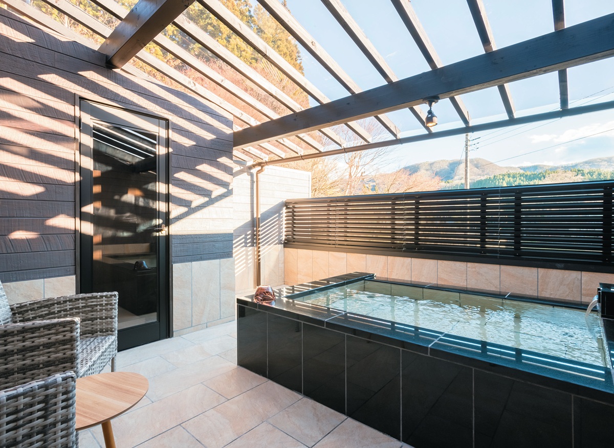 また本館「木楽館」で際立つのは、ユニバーサルデザイン客室や岩盤浴付き客室など4タイプ6室の特別フロア「奏楽(そら)」。そのほか、カジュアルな宿泊向きのコテージもある。男女交替制の露天風呂や大浴場、4つの庭園貸切露天風呂など、豊富な湯処で鬼怒川の名湯を楽しみたい。