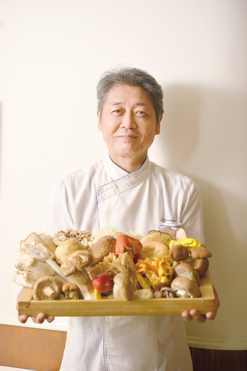 そんな無謀(?)な願いをかなえてくれたのが、恵比寿のフレンチ『マッシュルーム』の山岡シェフだ。フランス修業時代に多彩なきのこに心を奪われたという山岡シェフは、料理界きってのきのこの達人にして、きのこ採りの名人。今回はシェフ行きつけの山梨のキャンプ場でまずは腹ごしらえをして、万全の態勢で少し離れたシェフ秘蔵のきのこスポットへ。