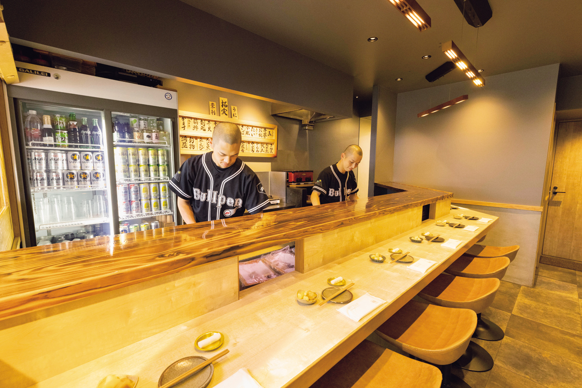 投手が肩慣らしを行う投球練習場「ブルペン」を店名にしたこちら。若手の経験を積める場所として、名店「鮨りんだ」から誕生したセカンドラインだ。