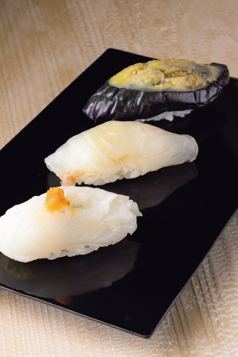 丁寧な仕事が活きる高品質なネタを支えるのは、本店同様に羽釜で炊き上げるふくよかなシャリ。ほどよく酸が感じられるよう白酢と赤酢をブレンドし、旨みある仕上がりに。コンセプチュアルな遊び心に反し、寿司はおふざけ0の真剣勝負!