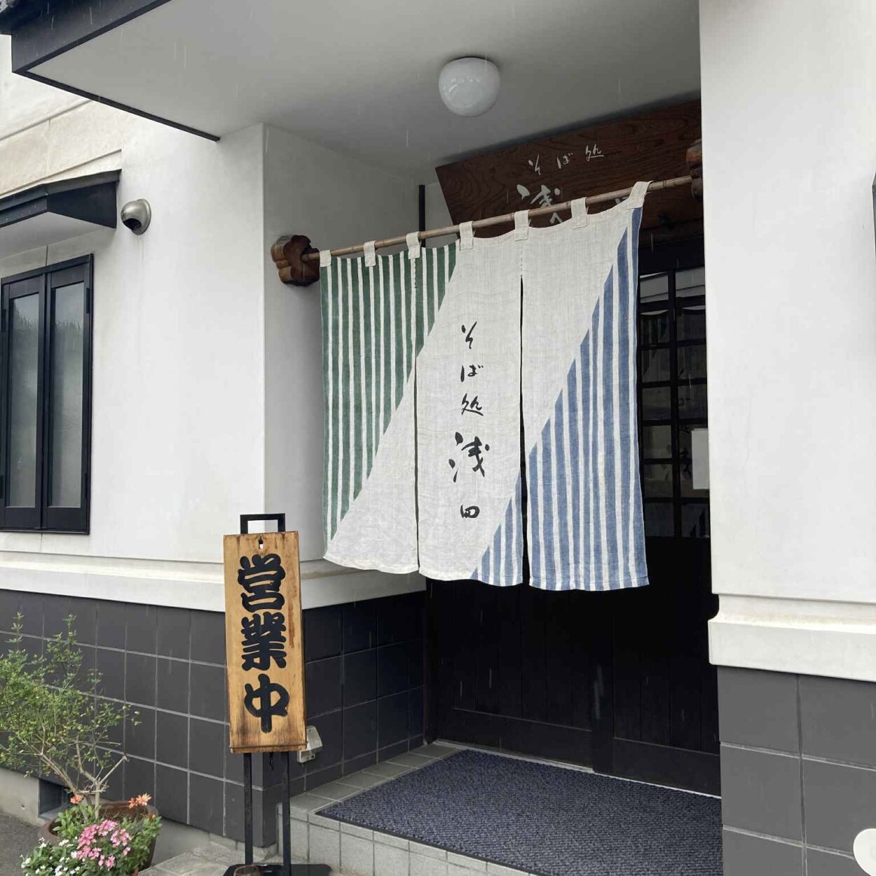 まずは城下町を散歩しながら、信州そばの名店『そば処 浅田』へ。コシの強い蕎麦が評判のお店です。松本城から徒歩15分くらいの場所にあります。蕎麦屋さんらしい外観に期待が高まります。