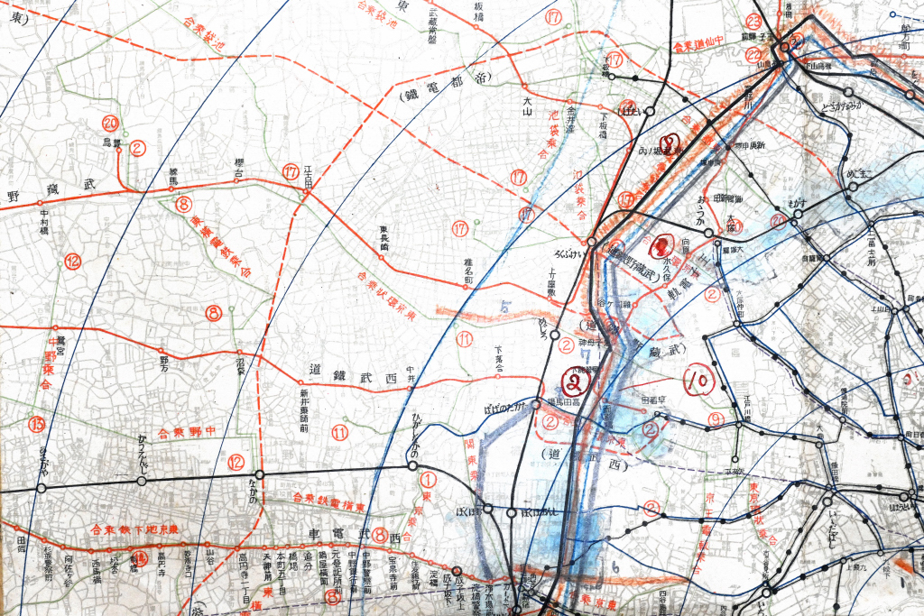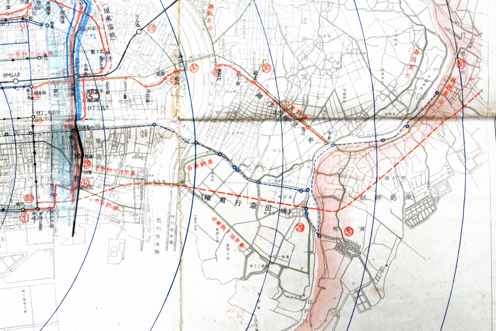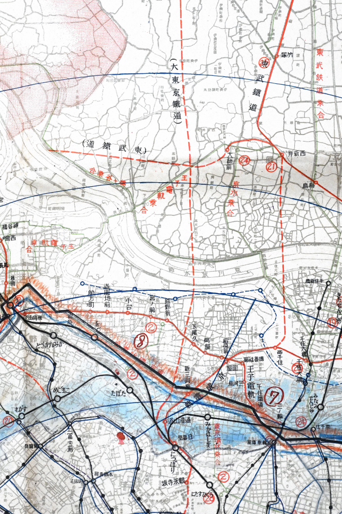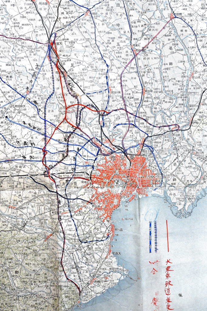 「このあたりに鉄道が走っていたら便利なのになぁ…」。ホームで電車を待つ間、そんなことを思い浮かべたことはないだろうか。今から100年前となる昭和のはじめごろは、帝都東京に鉄道を張り巡らせようと、いくつもの鉄道会社が新しい路線の建設に名乗りをあげた。ほどなく、世界恐慌による公共事業の打ち切りや、日中戦争(1937/昭和12年~)がはじまるなど、次第に日本国内は戦時体制となった。鉄道事業も迫りくる不況と資金難により、鉄道建設は中止、撤退へと追い込まれた。未成に終わった計画路線とは、どんなところを走る予定だったのか。当時の計画図をもとに、線路なき線路をたどることにしたい。