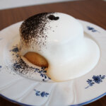 看板メニューとして登場するのが、「メリケン通りの白いパンケーキ」。ふわりとしたスフレパンケーキに、白さを保ちながらも珈琲の風味を感じられる特製クリームをたっぷりとかけ、香ばしくローストした珈琲豆をトッピングした一皿だ。