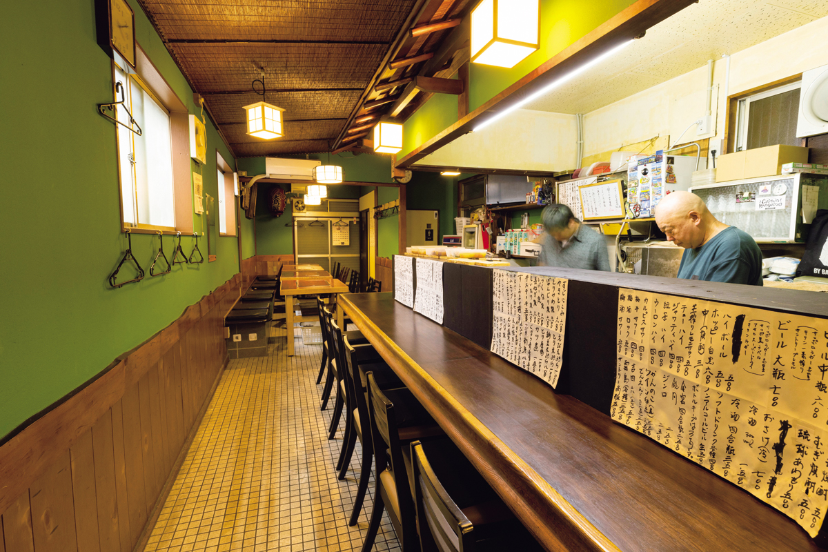 初代が居酒屋を始めたのが戦後直後の昭和21年のこと。つまみは焼鳥に煮込み、その時々のお惣菜……。どれも手間ひま込めた確かな味で、地元の常連に長らく愛されてきた。