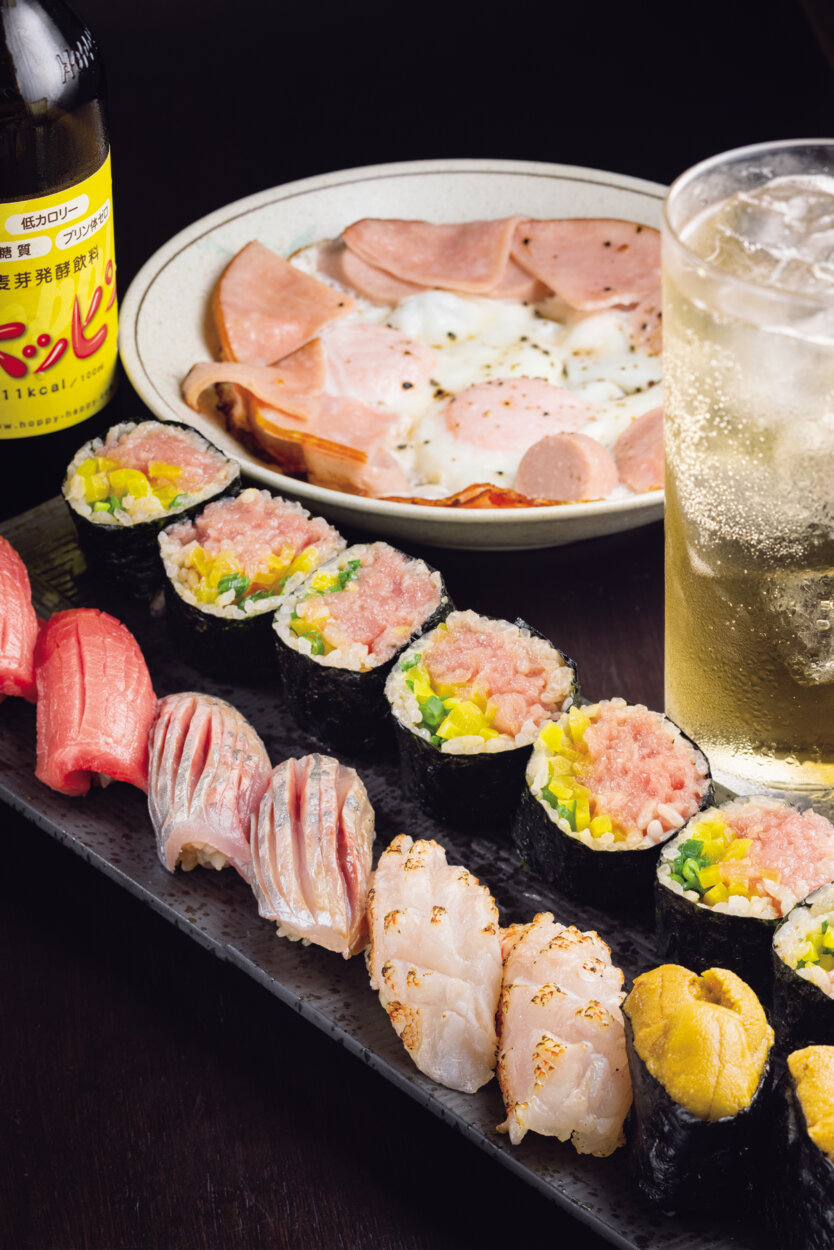下町らしい居酒屋の惣菜やつまみ、繊細な天然物の握りが同居