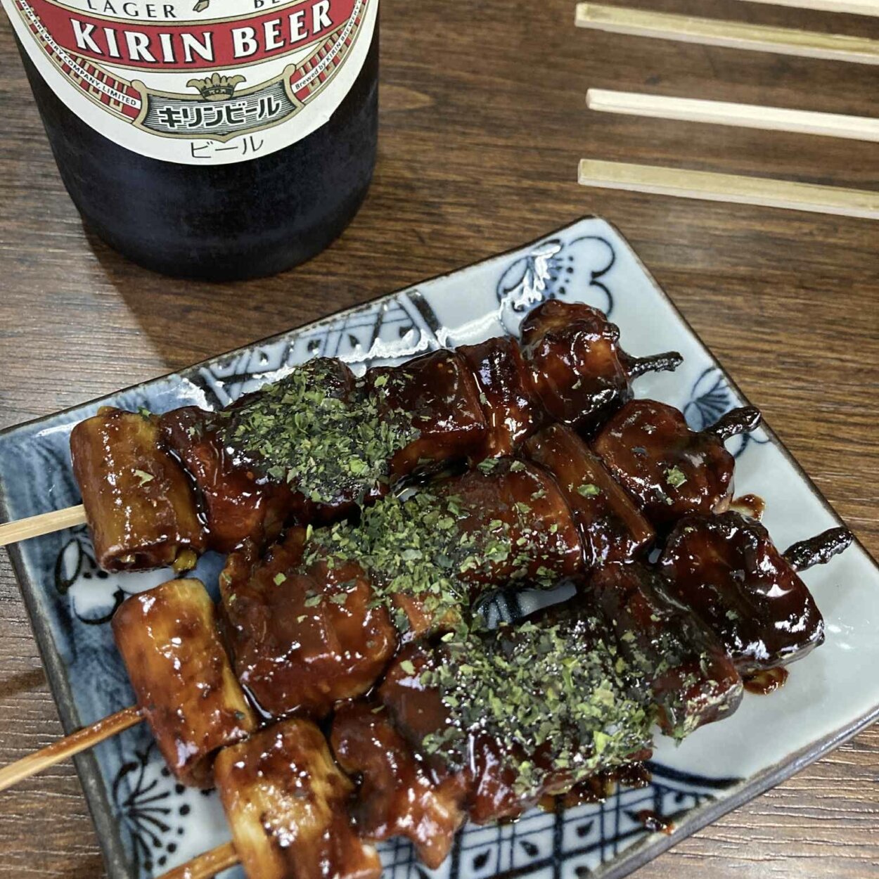 では、早速いただきましょう。まずは「でんがく肉」とビールを合わせました。名古屋メシの象徴でもある「甘辛い八丁味噌ベースのタレ」が田楽に絡みよく合います。鶏肉がしっかり主張し、ビールが止まりません。