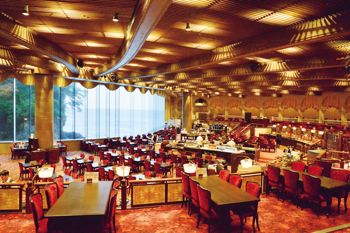 館内にはここを含め源泉異なる3ヶ所の湯処があり、湯めぐりできるのも巨大ホテルならではだ。加えて館内を歩けば、クラシカルなシャンデリアに重厚なソファー、そしてダイニングなんて、まるで海外の歴史ある劇場さながらで、昭和が生んだ“本物の上質”ってものを肌に感じられる。