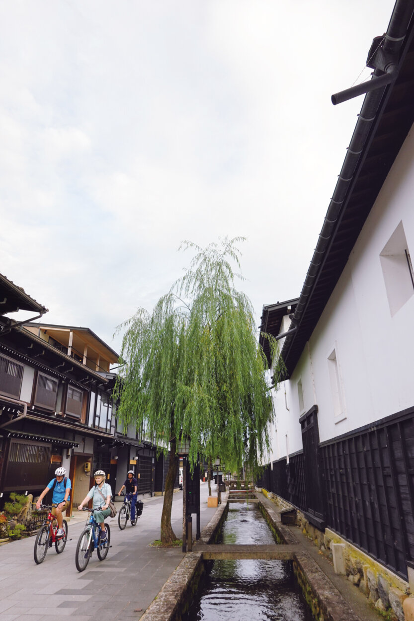 さあ旅の最後の町、飛騨古川へ。白壁土蔵と柳並木の間を美しい瀬戸川が流れる。お隣の飛騨高山にも似た町並みだが、少し雰囲気が違う。バケツを持って歩くお母さんや、ひと息つくお惣菜屋のおじさん……。土産物屋が並ぶテーマパークっぽさはなく、そこかしこに生活感が漂っている。