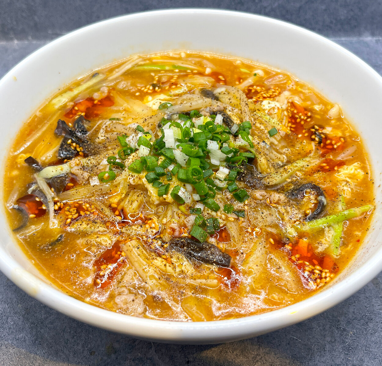 また、ゴマとナッツの香ばしさに麻辣の刺激がふわりと広がる「麻辣ゴマ担々麺」(1200円)、濃厚なゴマのコクと花椒・唐辛子の香りが際立つ「汁なし麻辣担々麺」(1100円)もラインナップ。さらに、両面を香ばしく焼き上げた麺に海鮮と野菜を合わせた「麻辣あんかけ焼きそば」(1200円)、辛さと熟成した酸味のハーモニーを楽しめる「麻辣酸辣湯麺」(1200円)など、食欲を刺激する品々が並ぶ。