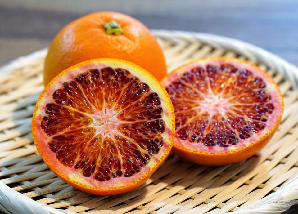 イタリアのシチリア島で生まれたとされるブラッドオレンジは、その名のとおり「血(Blood)」のように鮮烈な赤色を帯びた果肉が最大の特徴です。
