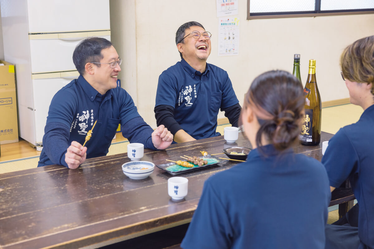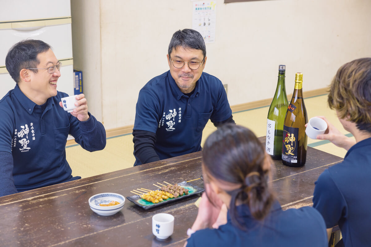 中田杜氏になってから、蔵の中にコミュニケーションの機会が増えたという。おでん談義では距離が生じたが、笑顔の絶えない自然な空気に、固い信頼関係を見た。