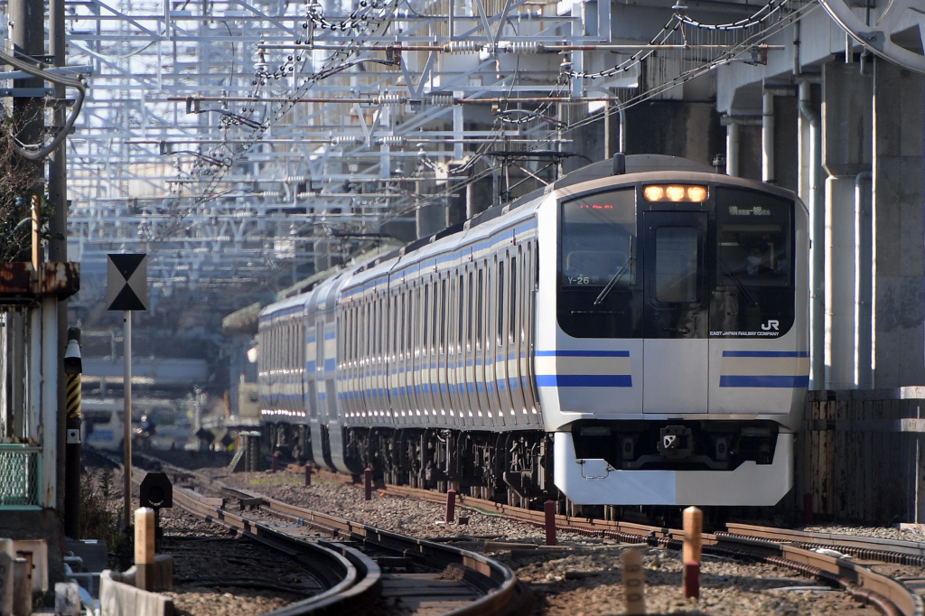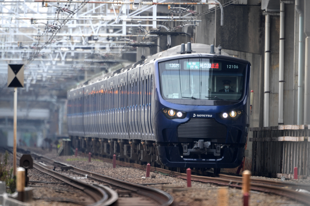 ※トップ画像は、品川区内の閑静な住宅街のなかを走る東海道貨物線(品鶴線)の「大崎支線」をゆく湘南新宿ライン=2021年3月10日、品川区西品川