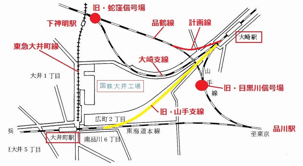 山手支線は、京浜線の線路を横断するように東海道線の線路に接続していたこともあり、その後の1916(大正5)年に廃止されてしまった。廃止後は、大井工場(現・東京総合車両センター)の試運転線として、山手支線(大井連絡線)の線路は、昭和42年くらいまで使用されていた。現在は、2層式の山手電車区(旧・品川電車区/山手線の電車車庫)が建っており、往時の姿を確認することはできない。