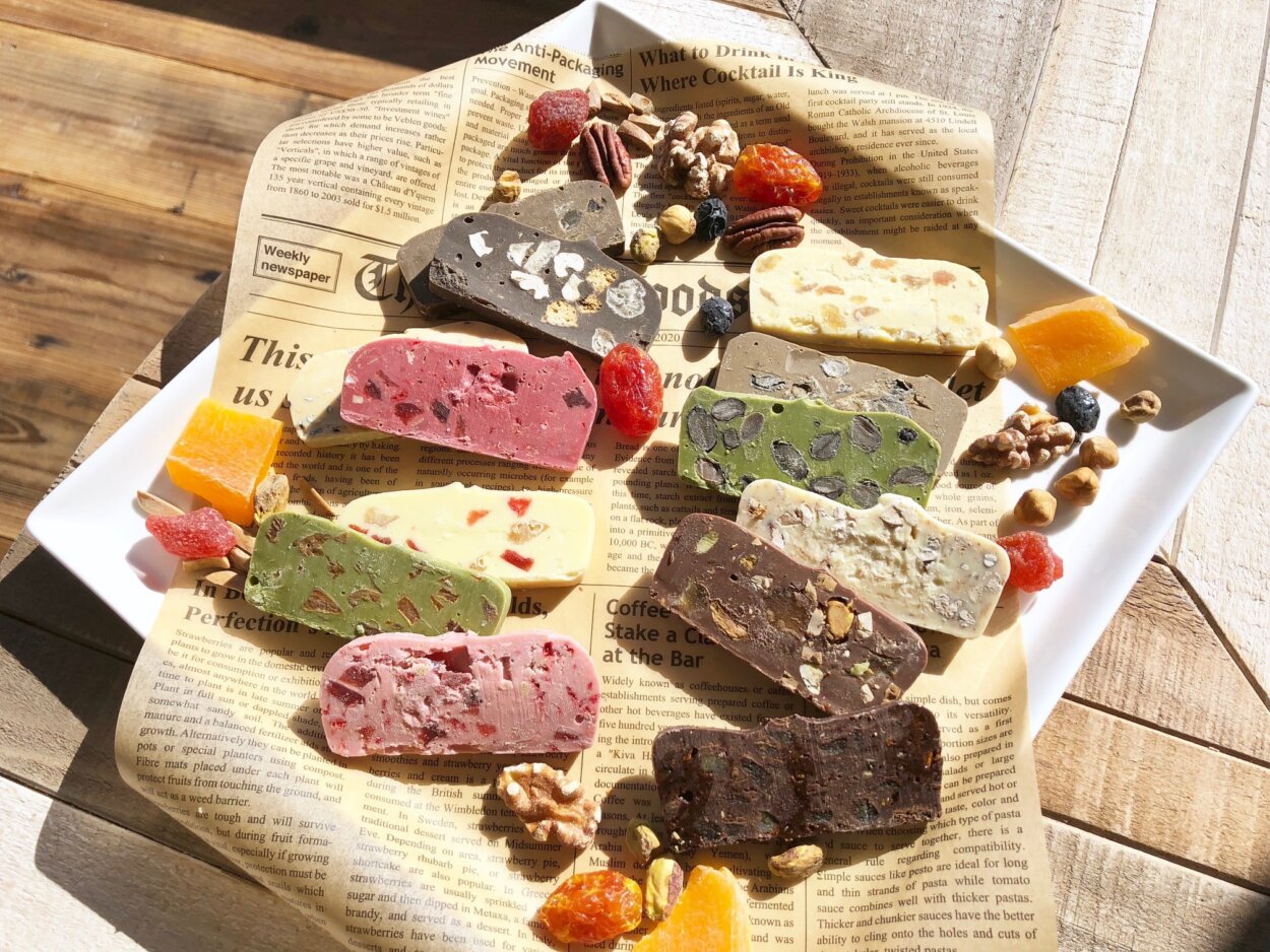 看板商品は、日本全国のさまざまな食材を使い、その種類150以上というカラフルな「QUONテリーヌ」。2014年に愛知県豊橋市でスタートしたこの小さなブランドは、今や全国61拠点43店舗に拡大し、バレンタインシーズンには全国の大手百貨店の催事で、商品のチョコレートを求める行列ができるほど人気となりました。