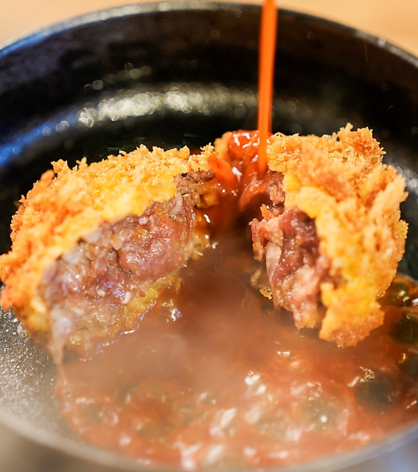 卓上で“育てる”極上メンチカツ。揚げたて×和牛100%の新スタイル