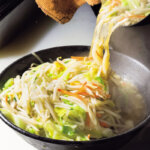 店主が掲げる“軽いけど、深い旨み”とはまさに言い得て妙。くどさはないのに、余韻がいつまでも響き続ける。啜り心地を楽しめるよう長めに切り出した中細麺は、しっかり麺を泳がせながら、茹で上がるまで片時も目を離さない。