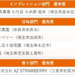 金賞は6点で栃木県、三重県、奈良県、埼玉県の生産者による商品が選ばれた。このほか銀賞、銅賞がいずれも8点、入賞は41点。さらに最も印象に残った「インプレッション部門」、最も甘いと感じられた「甘味部門」、最も香りが高いと感じられた「香り部門」も選定した。画像ギャラリーでは受賞商品のリストや審査の様子、最高金賞と金賞の画像を掲載している。