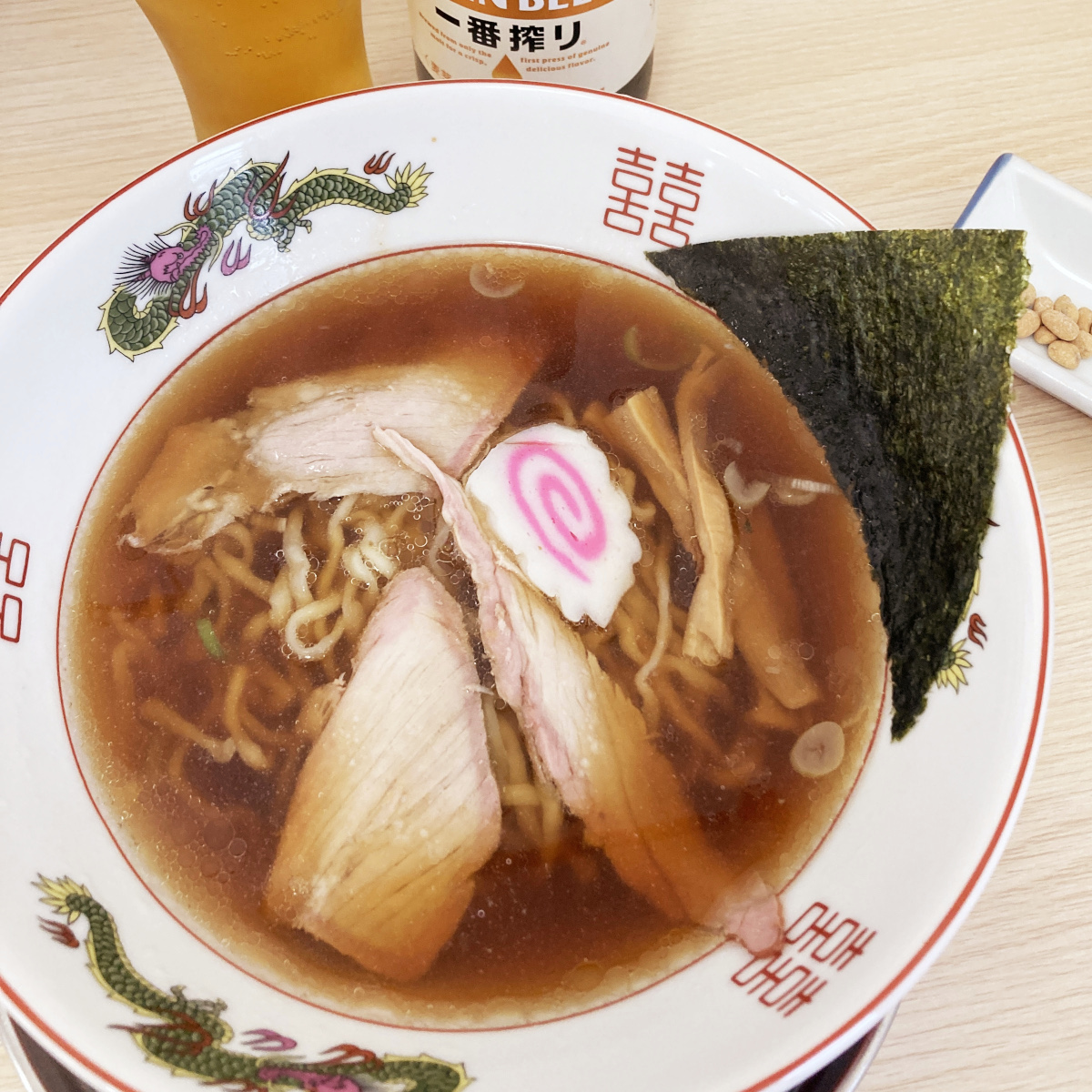 さて、「とら食堂」含め、個人的に「白河ラーメン四天王」と呼んでいるお店があります。『手打中華 英(はなぶさ)』、『火風鼎(かふうてい)』、『手打中華 すずき』です。どのお店も超がつく名店なのですが、新白河駅からは距離があり、車がもっとも便利な交通手段です。となるとビールは飲めない。そこで、白河ラーメンにビールを合わせたい方のために、新白河駅から徒歩圏にある穴場の2店をご紹介します。