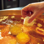 もちろん味の進化も止まらない。移転後は銘柄を六白黒豚に限定し、常に鮮度のいい状態をキープ。桃色の断面は肉汁で艶めき、甘みを帯びた香りが立ち上る。
