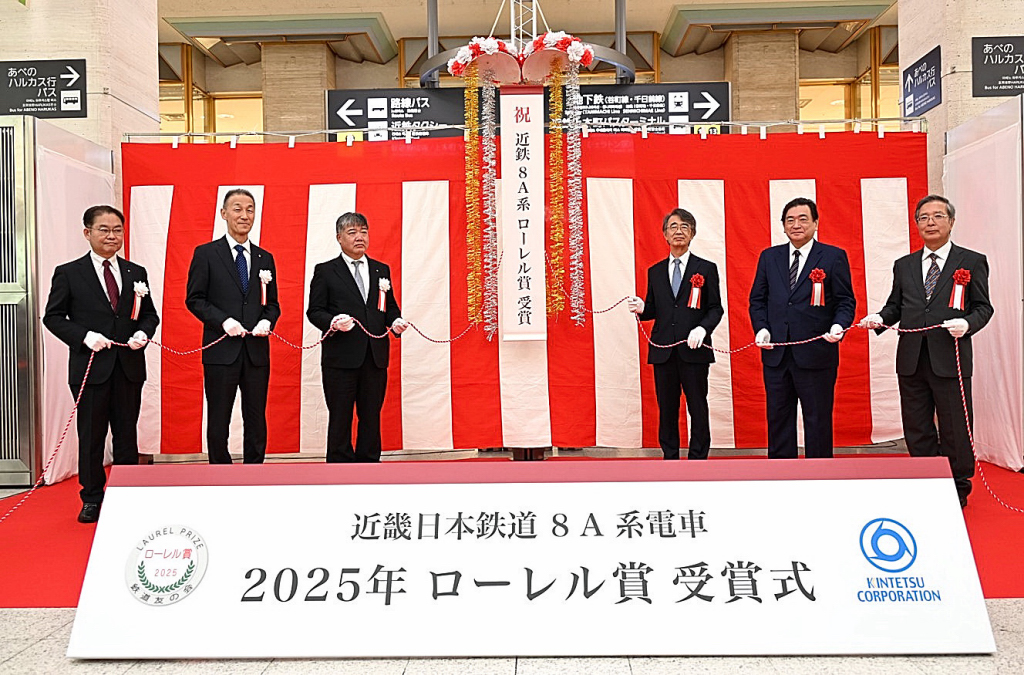 ※トップ画像は、2023年に登場した鉄道車両の中からローレル賞に選定された大阪メトロ400系電車の車内に掲げられた受賞記念プレート。大阪メトロ中央線で=2025年8月21日、大阪市此花区