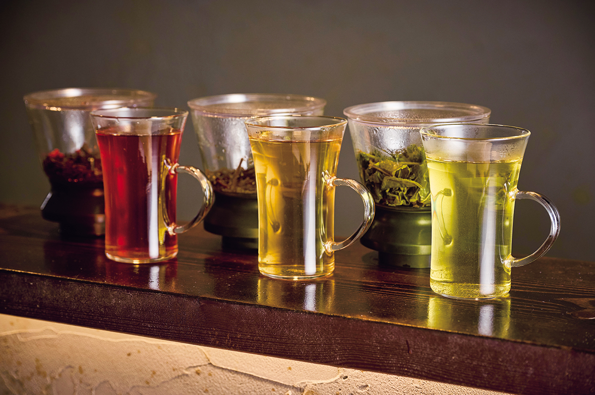 緑茶やほうじ茶はもちろん、プーアル茶、雲南紅茶、カモミール、挽き割りそば茶……と、お茶も定番だけで17種類。寒い夜には熱めのお茶で温まりながら、グラスの焼酎に好みの濃さで注いでいくのがいい。茶割りホットは癒し感抜群だ。