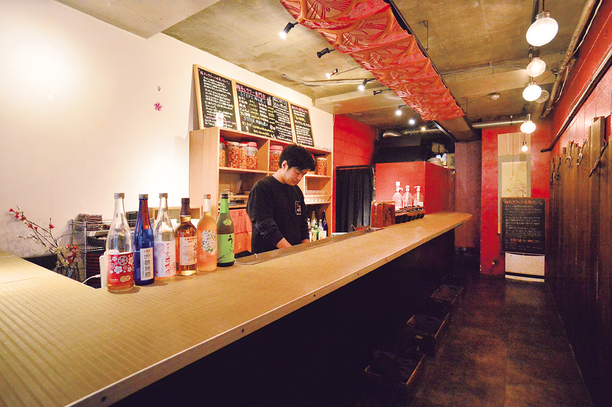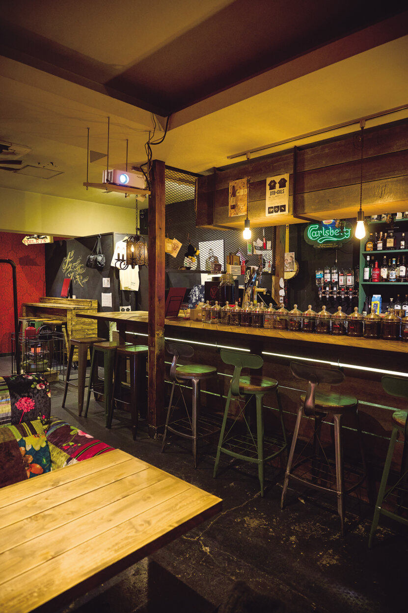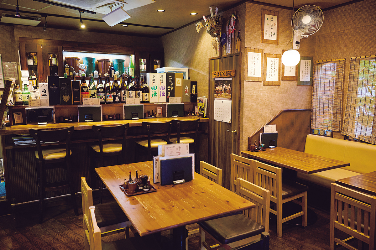 「もともとお茶割りばかり飲んでいた」という店主の樋口さんが、ある日洋酒と合わせてもイケるなと気づいたことがきっかけ。なのでベースの酒には焼酎6種以外にジンやラムなど洋酒もあり。で、ダイナーの名前どおり、昔のアメリカ映画が思い浮かぶようなちょっとラフで肩肘貼らない空間もいい。