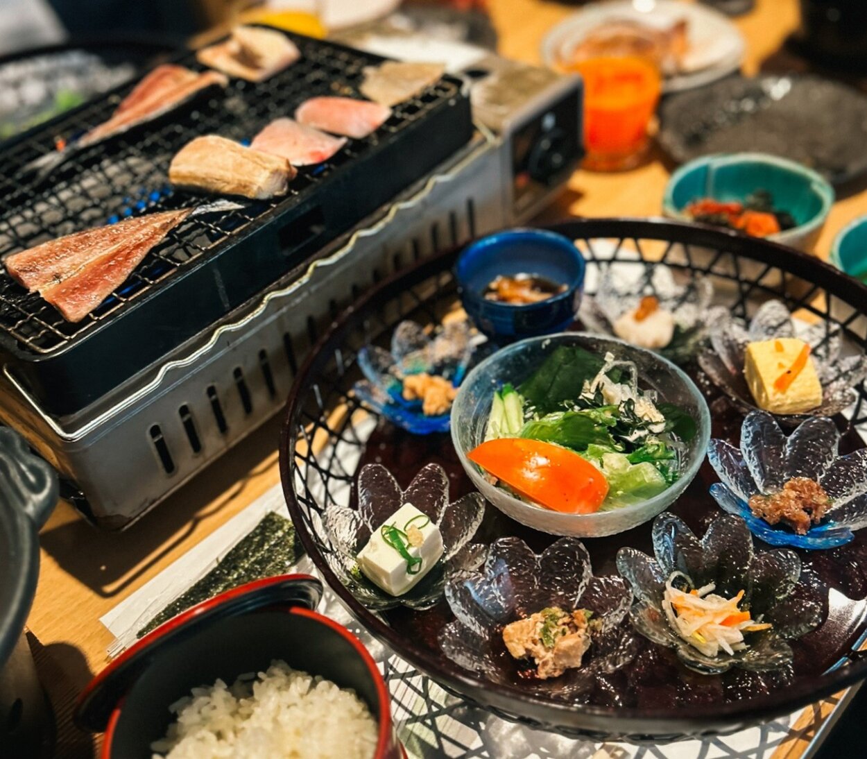 自家製干物は、セルフで焼き上げるスタイル