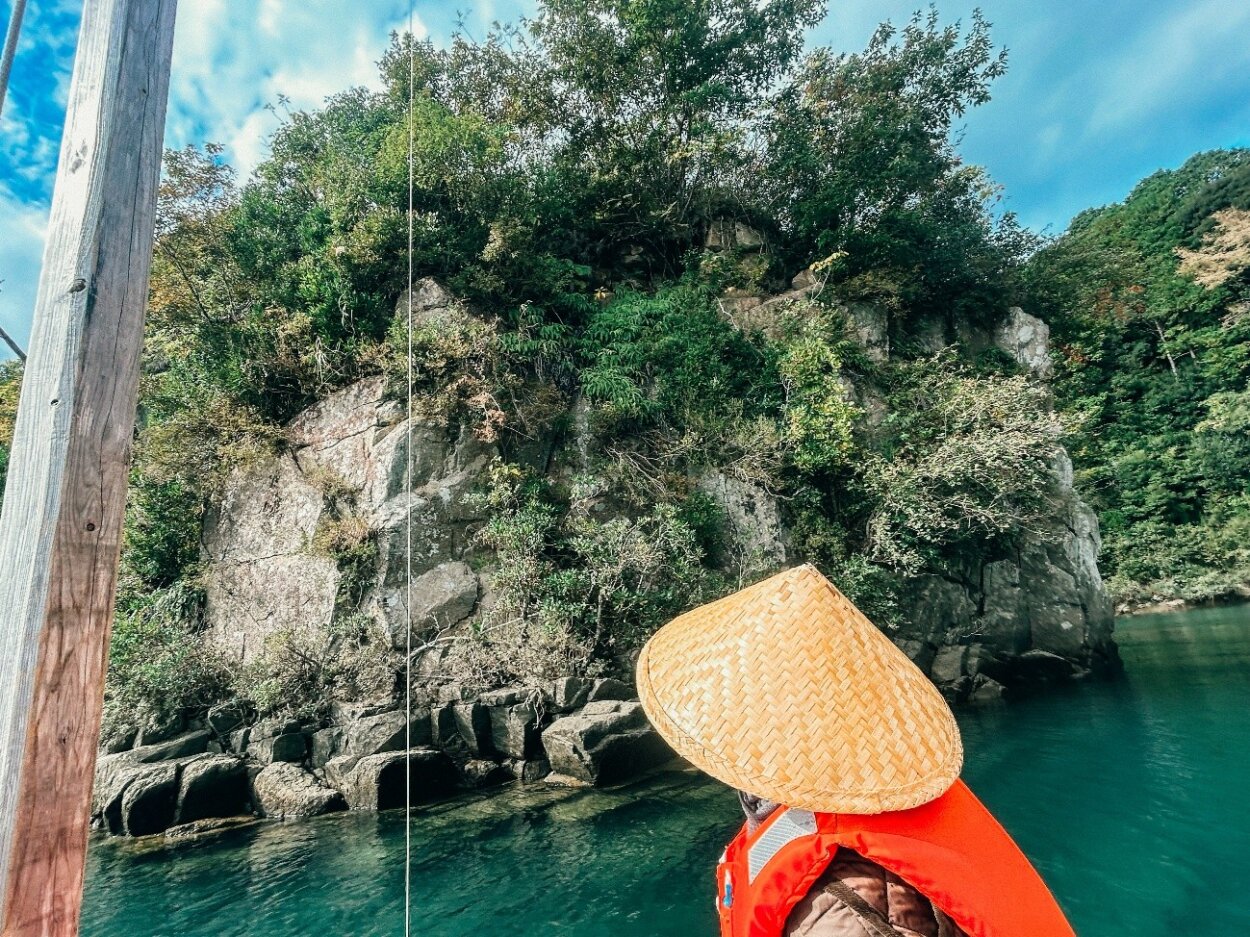 舟は古くから使われる木造舟を参考にスギやヒノキ、ケヤキなどを使用し、工房で手作りしているそうだ。両岸のダイナミックな景観や鳥のさえずり、水の音に耳を傾けながら、ゆったりと熊野川を巡ろう。