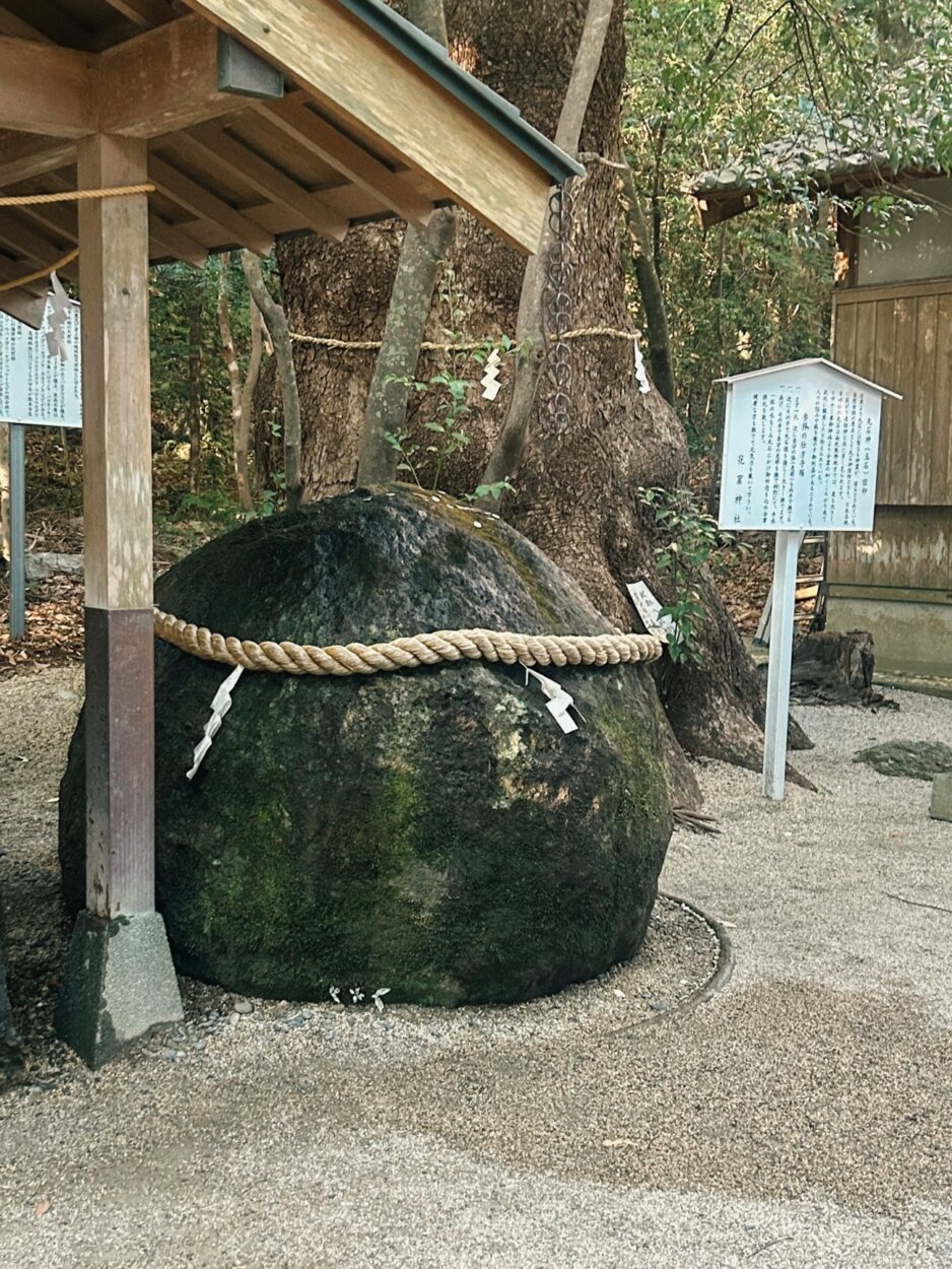 しめ縄がかけられた大きな丸石