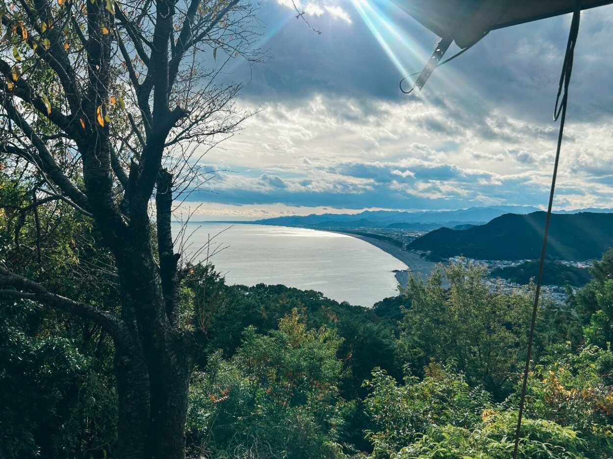 鬼ヶ城ハイキングコースの方面に向かい、200メートルほど歩いた休憩小屋、『東屋(あずまや)』は、必ず足を運んでみてもらいたいスポットだ。約22kmにおよぶ日本最長の砂礫海岸『七里御浜』や雄大な山々、熊野市街を一望することができ、清々しい空気に包まれながら圧倒的な開放感に浸れる。「日本の渚百選」にも選ばれた、景勝地だ。約30分で峠に到達できる松本峠は、ハイライト的なポイントも多いので、初心者にとっては満足度の高いコースなのではないかと思う。