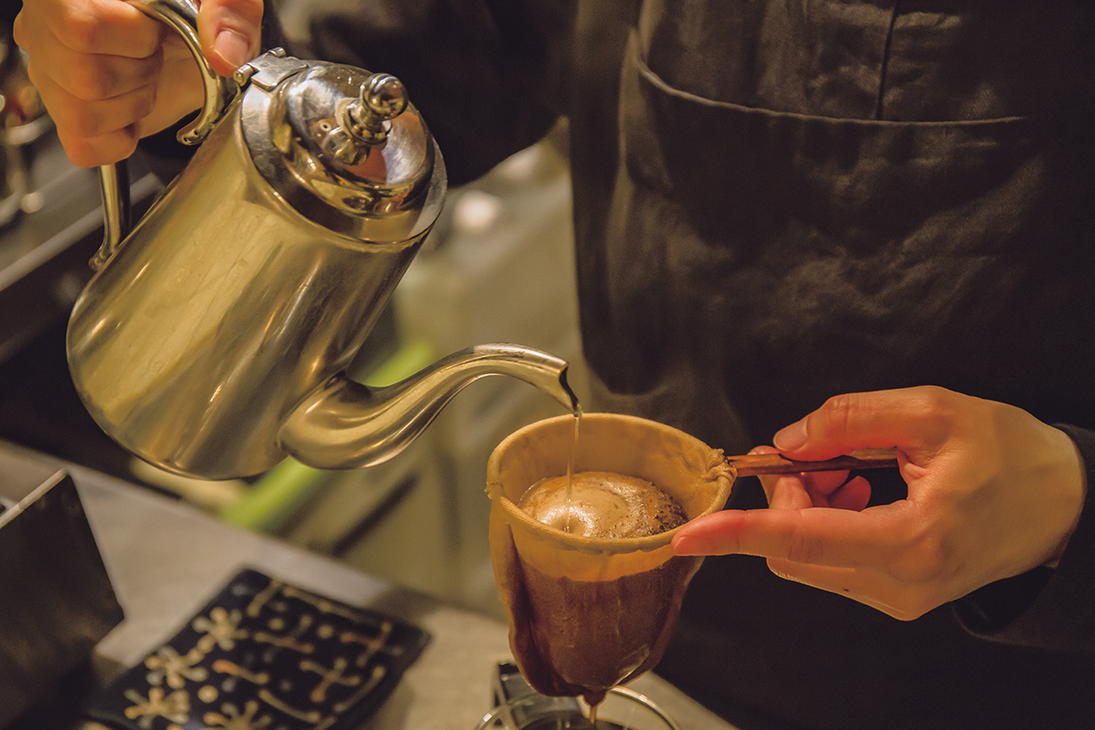 かつて『六分儀』として長く営んでいた名喫茶を、現在は東京・蔵前にある珈琲とチョコレートの店『蕪木』が引き継ぎ、岩手在住のスタッフで運営。時空が止まったかのような空間はそのままに、新たな若いお客も加わり次の時代を紡いでいる。