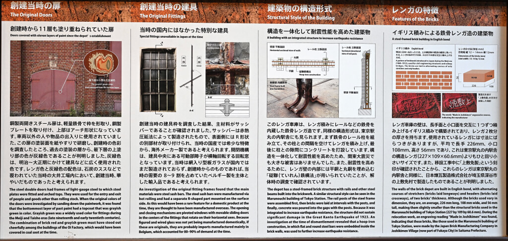 そして現在、このレンガ車庫の外壁の一部が、大井町トラックスの一角(交通広場)に移築・展示されているというわけだ。