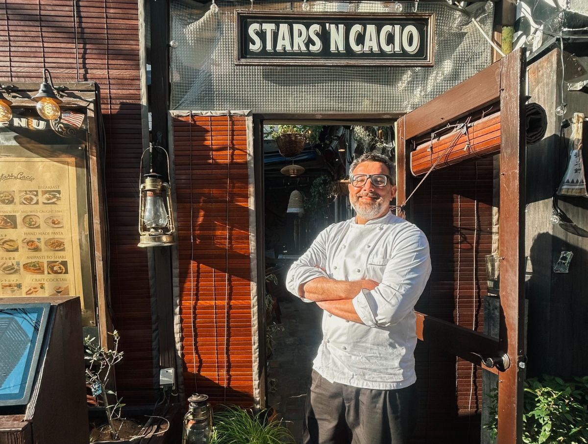 最終日に向かったのは河原町だ。ホテルから歩いて行けるこの周辺は、カジュアルなカフェやレストランが豊富なエリア。そんな路地に異国情緒あふれるいい店があると聞きつけ、足を運ぶことに!店の名前は、『Stars’n Cacio Kyoto』。『ブルガリホテル』をはじめ数々の高級ホテルで総料理長を歴任した、アンドレア・フェレーロさんが「本物のイタリアの味を京都から日本に発信したい」という思いでオープンした店だ。