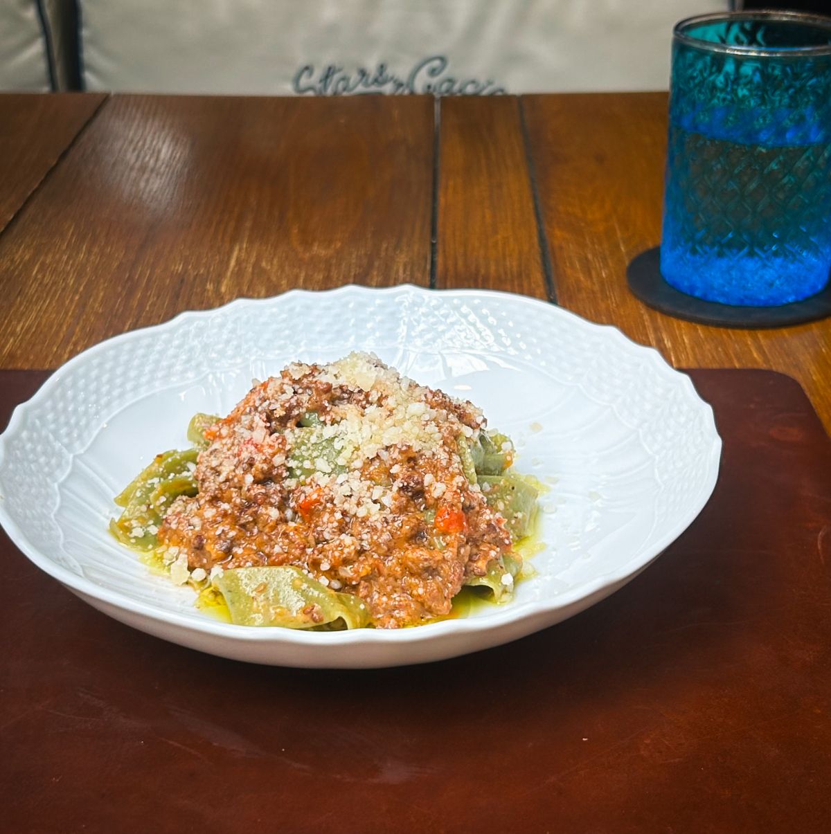 セモリナ粉を活かしたもちもち食感のフレッシュな自家製平打ちパスタも、一度は食べておきたいメニューだ。北海道の赤牛を使用した「ほうれん草のパッパルデッレ ボロネーゼソース」は、噛むほどに力強いコクとうま味が広がる。日本の季節の素材を積極的に採用し、素材の自然な味わいを生かした料理は、シェフの温かさと潔さを一口ごとに感じるメニューばかり。