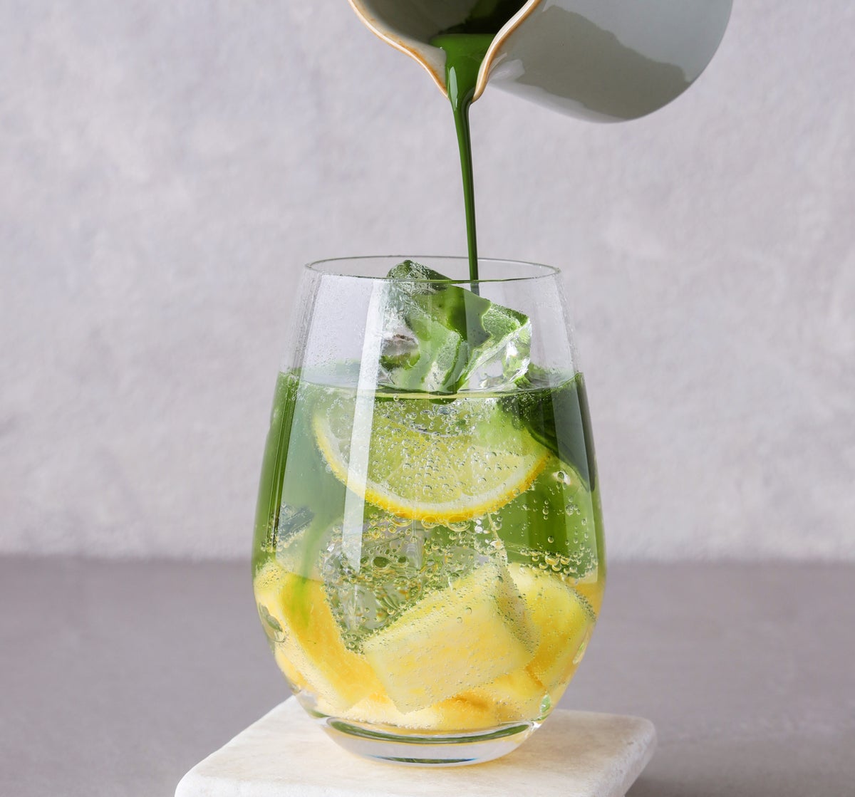 「茶ポンス」とは、抹茶を炭酸で割った、いわゆるティー・パンチのこと。名前こそ聞き慣れないが、その源流は意外にも古い。1926年に開かれた第2回アメリカ・フィラデルフィア万博に出展された「日本茶喫茶室」で、抹茶を炭酸水で割ったこの一杯が提供されて人気を博したという。そして今回の『茶ポンス』は、ちょうど100年の時を超え、令和の京都で現代的に再解釈されて蘇ったメニューというわけだ。