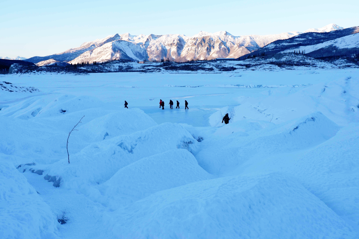 特に今回のイベントで強調されたのが冬の魅力で、夏に比べて宿泊費用を抑えることができ、晴天率も高く、オーロラも期待できる。オーロラは条件次第でダウンタウンからでも観測可能だ。さらに一押しという体験がマタヌスカ氷河のハイキング。冬は氷が安定するため氷河の上を安全に歩くことができ、「氷河版アンテロープキャニオン」と言えるほどの光景が広がる。