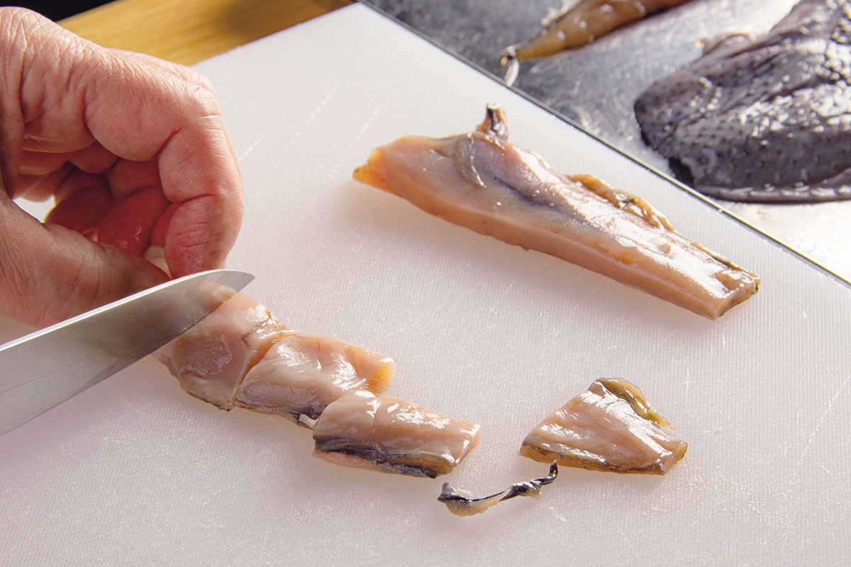 噛むほどにあふれる旨みは無垢そのもので、夜の品書きに並ぶ小鍋や炙り焼きに使われている。