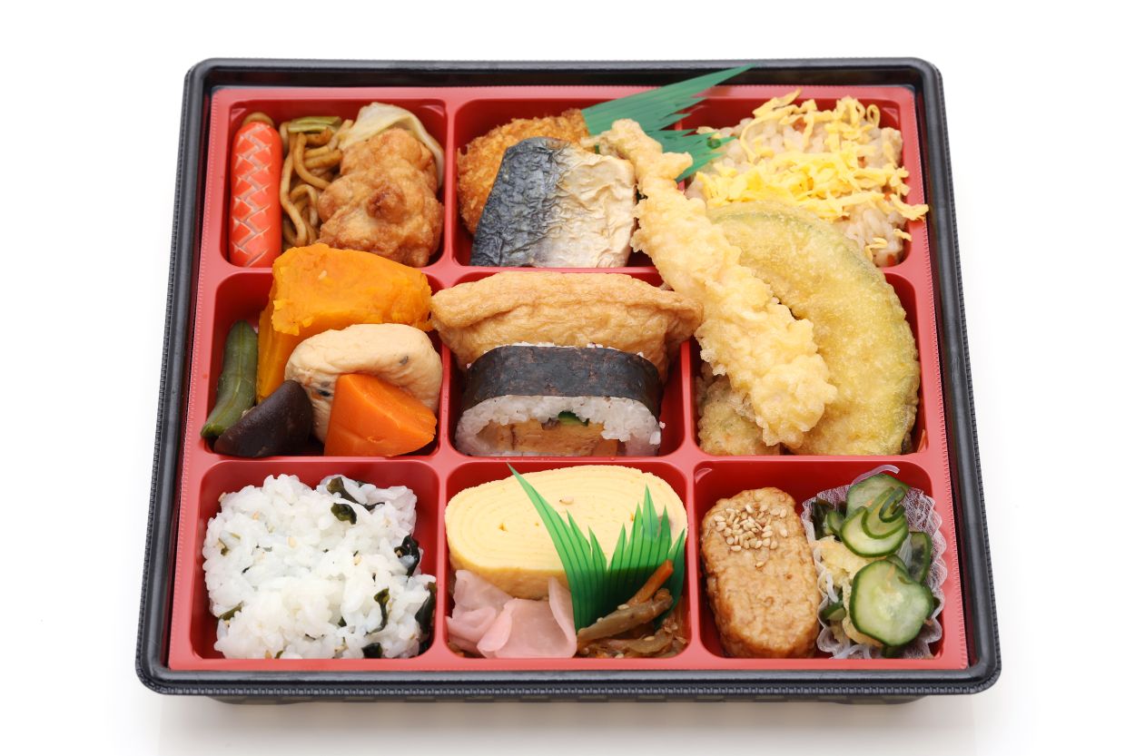 ・和風の幕の内弁当: ちょこんと入っている揚げ物や、炒め物の油で一気に脂質が跳ね上がります。