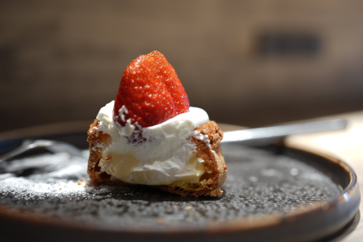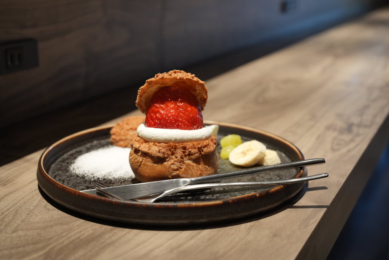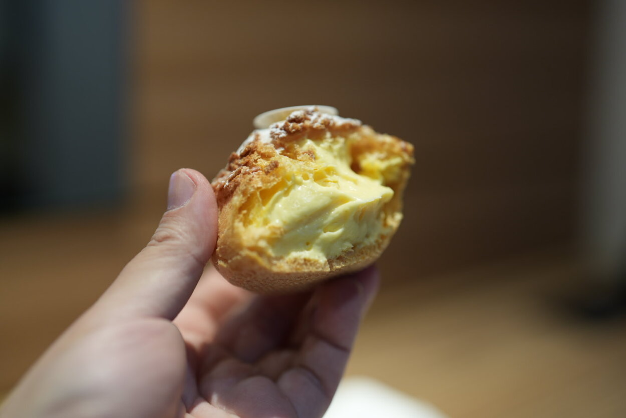 シュークリームは、ザクザクとしたクッキー生地の香ばしさと、濃厚でとろけるクリームのバランスを意識した設計。自家焙煎のスペシャルティコーヒーと合わせたときに、ちょうどよく感じられる甘さとコクに仕上げられています。