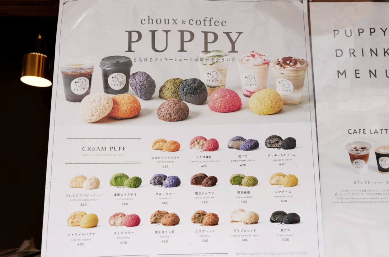 『PUPPY choux&coffee』メニューを見るだけでワクワクするほど種類が豊富