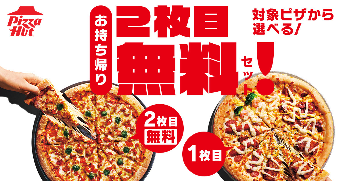 また新商品は「持ち帰り2枚目無料」のサービスも対象内。1枚目に対象ピザを購入すると2枚目の対象ピザが持ち帰りで無料、配達だと半額で注文できる。大人数でもお得に楽しめるのがうれしい。